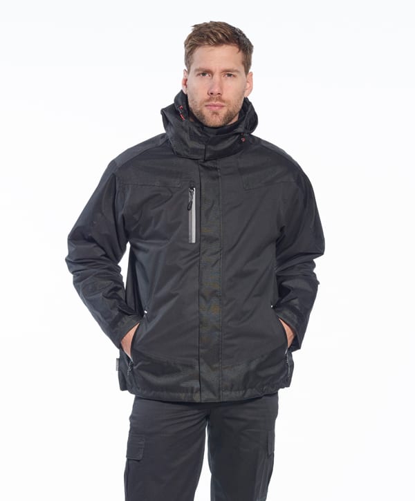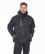 Αδιάβροχο μπουφάν 3 σε 1 με εσωτερική αποσπώμενη ζακέτα φλίς, που μπορούν να φορεθούν χωριστά, με κρυφή κουκούλα στον γιακά, 3 τσέπες, μανσέτες ρυθμιζόμενες με hook & loop. Ύφασμα 100% πολυεστέρα, 130 gr/m, φλίς πολυεστερικό 280 gr/m.